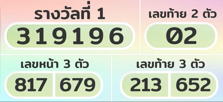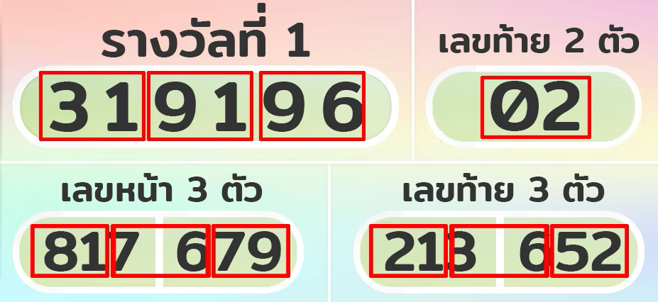 ตัวอย่างการนำผลรางวัลสลากกินแบ่งรัฐบาลไทย มาออกเลข ตาย 20 ชุด